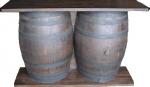 Barra o mostrador de 2 medias barricas, con tablero de 150 cm x 40 cm.