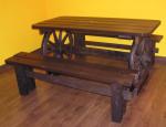 Conjunto de mesa de ruedas de carro y dos bancos