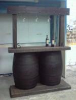 Barra o mostrador de 2 medias barricas, con altillo de copero y botellero
