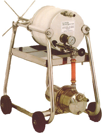 Construído en acero inox., platos de 31 cm de diametro x 3 cm de grosor., todo el equipo montado sobre ruedas, bomba centrifuga inox incorporada.